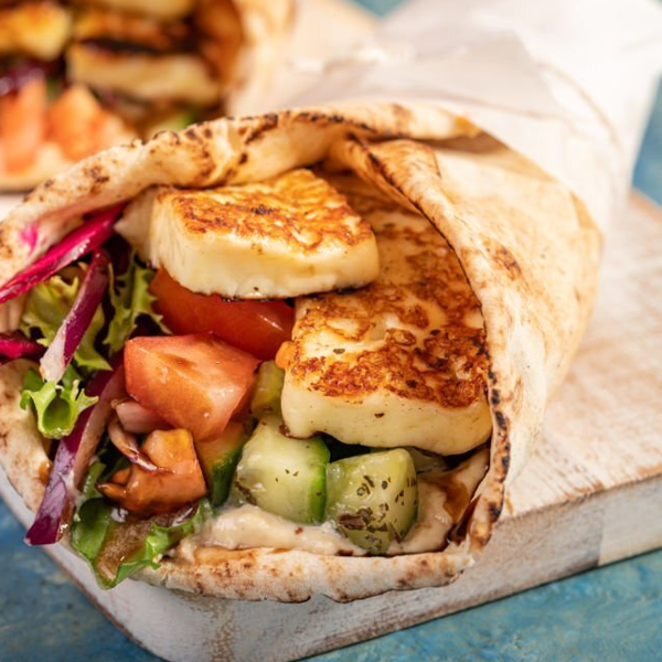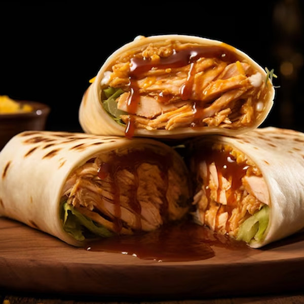 Indulge in a flavorful chicken wrap bursting with succulence and satisfaction.